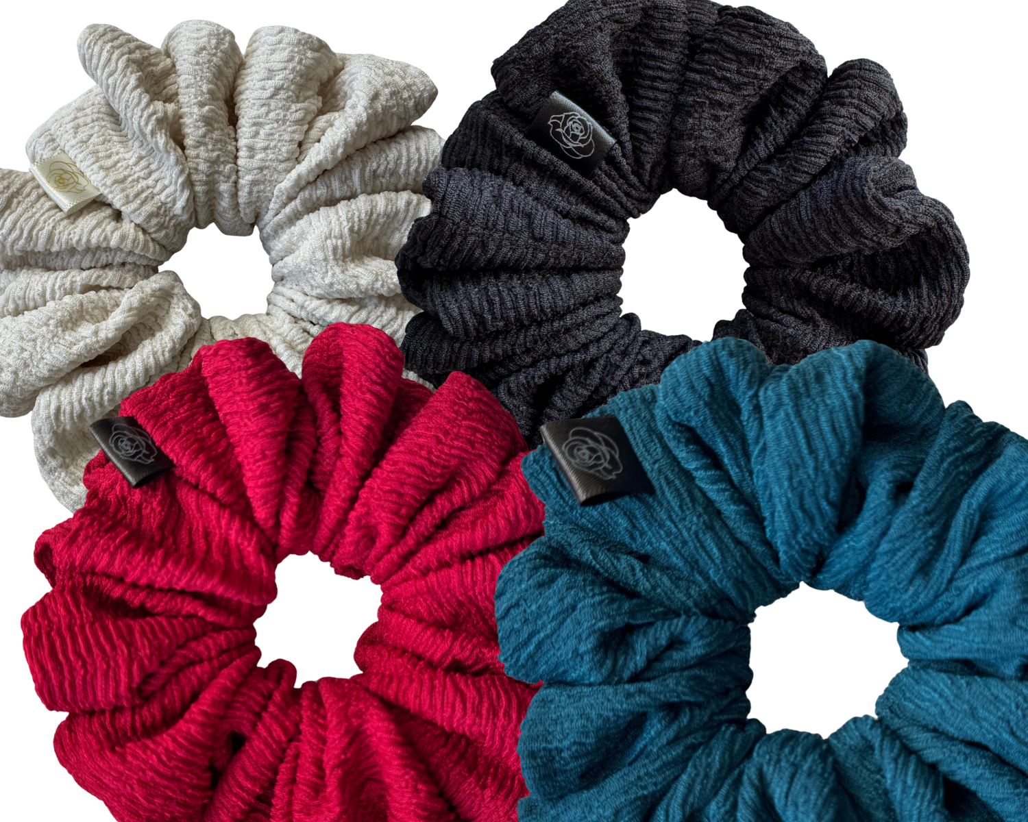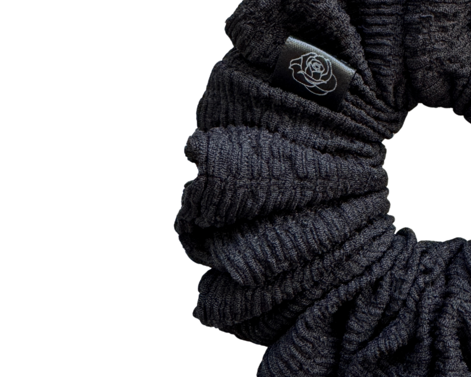 Elevate your everyday look with this Classic Rose scrunchie in timeless onyx black. Soft, voluminous, and effortlessly chic, it complements any outfit — from casual to elegant. Designed for comfort and style, this piece brings a touch of everyday luxury to your look.