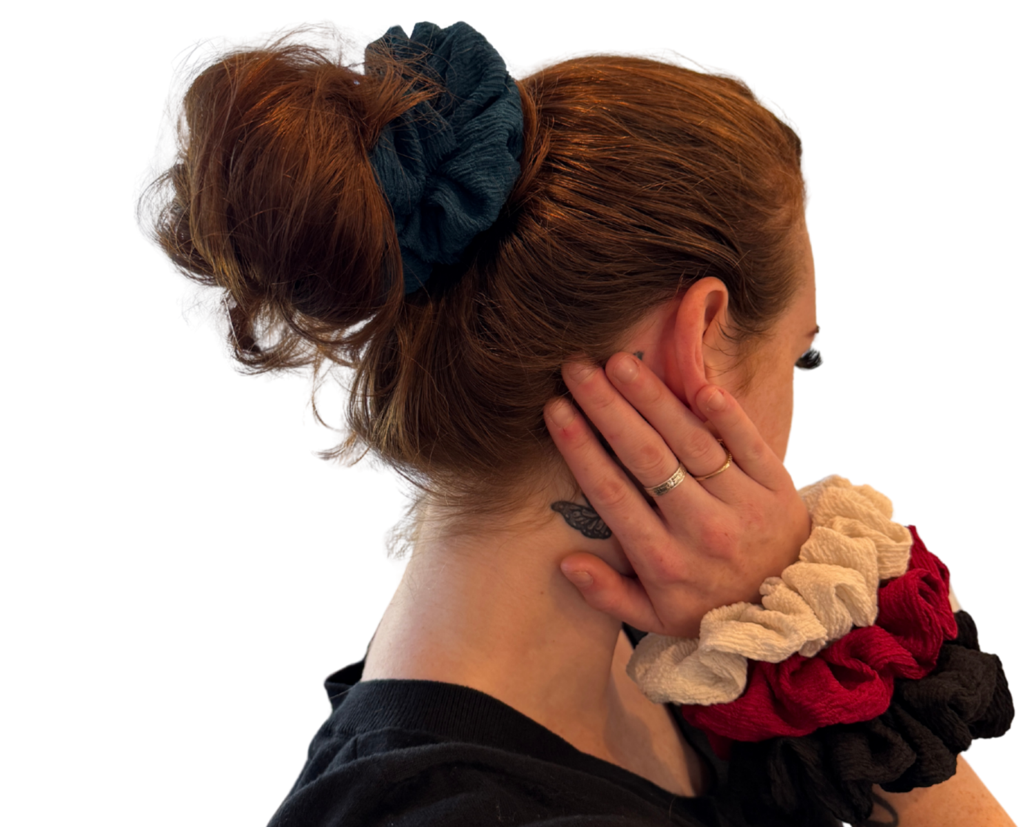 Make a statement with this classic Rose scrunchie in a mesmerizing crystal teal shade. Soft, voluminous, and elegant, it adds a bold touch of colour to any hairstyle — perfect for a sleek ponytail, messy bun, or wrist accessory. Designed for comfort and style, this piece brings a touch of everyday luxury to your look.