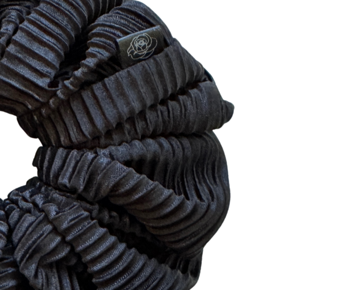 Step into timeless elegance with Jazzy Noir, where classic sophistication meets a hint of playful charm. This deep black Lush XXL scrunchie is crafted from soft, stretchy polyester with a subtle sheen that catches the light just right—luxurious, bold, and effortlessly chic.